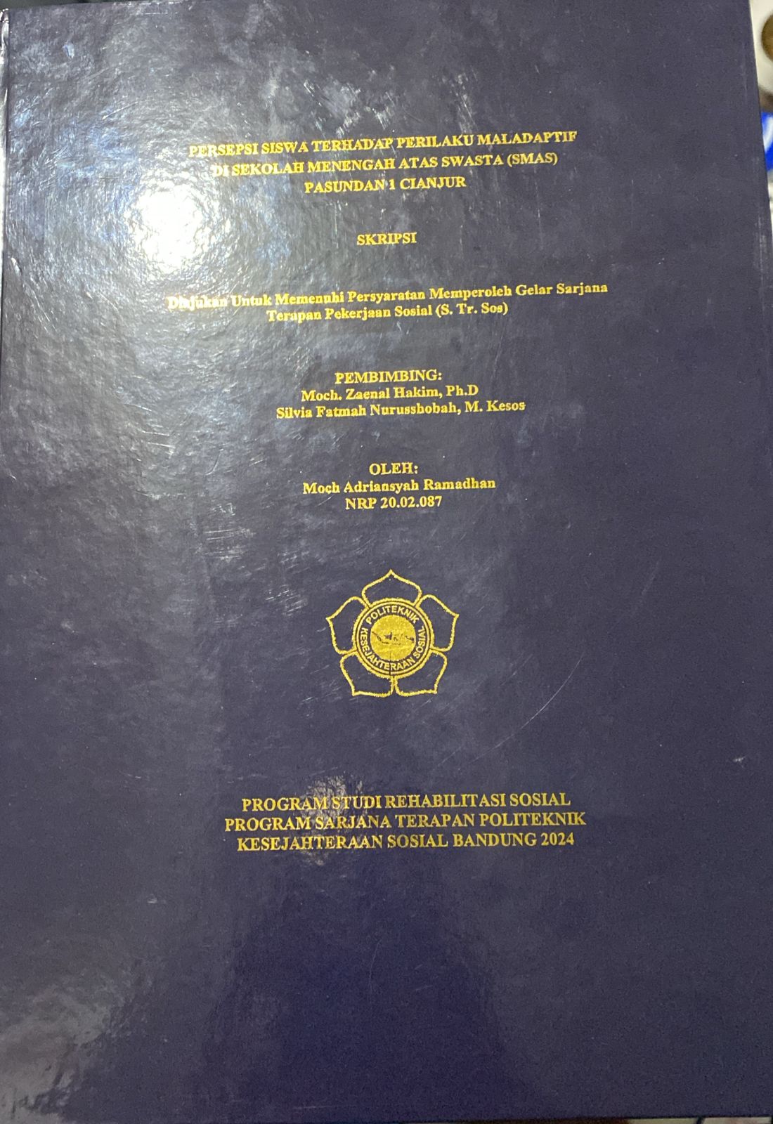 MOCH ADRIANSYAH RAMADHAN, NRP.20.02.087 Persepsi Siswa Terhadap Perilaku Maladaptif Di SMAS 1 Pasundan Cianjur, Skripsi, Progam Pendidikan Sarjana Terapan Pekerja Sosial, 2024,