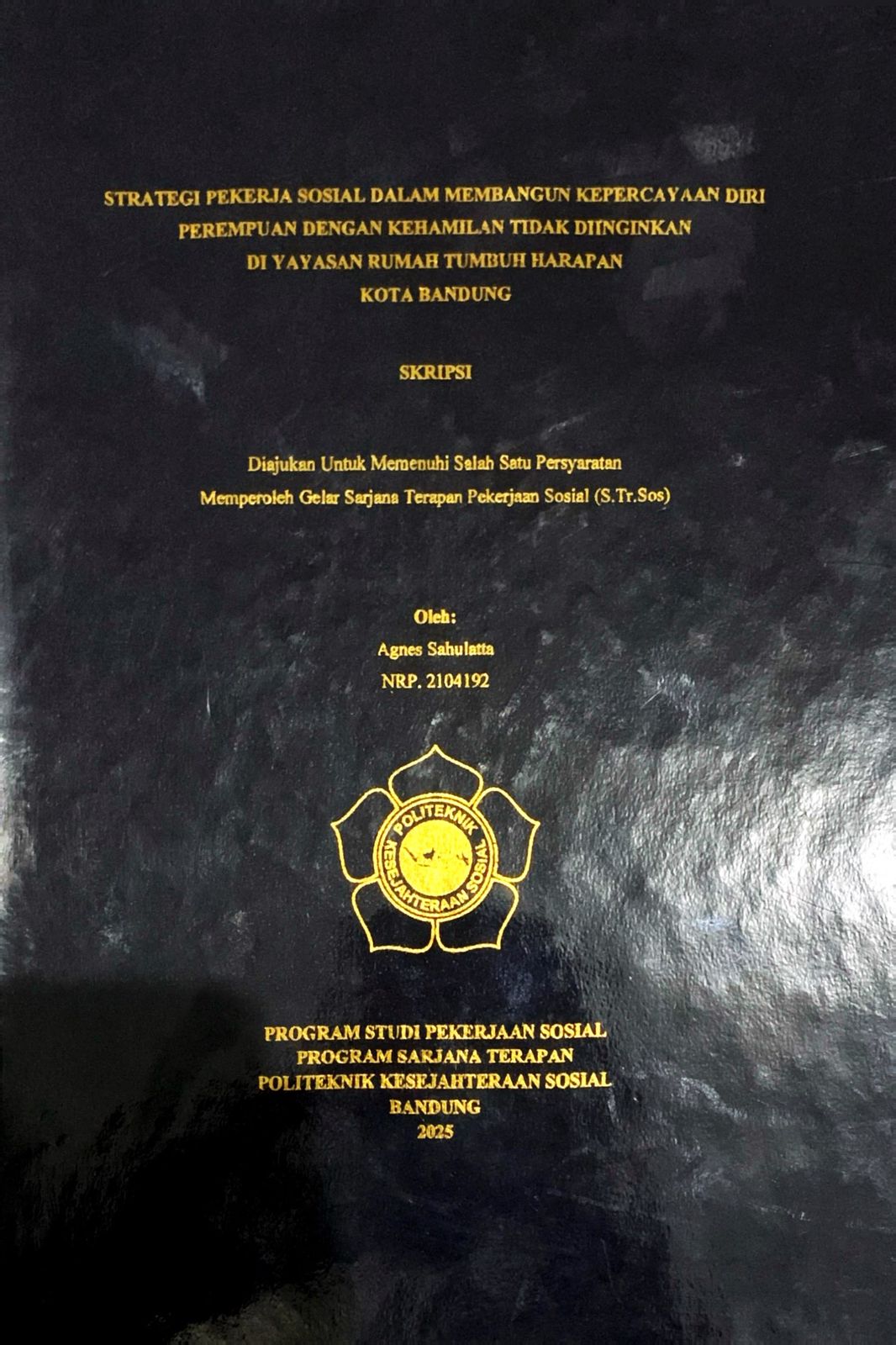 AGNES SAHULATTA, NRP. 21.04.192. Strategi Pekerja Sosial Dalam Membangun Kepercayaan Diri Perempuan Dengan Kehamilan Tidak Diinginkan Di Yayasan Rumah Tumbuh Harapan Kota Bandung. Dosen Pembimbing Drs Ramli, M.Pd dan Wiwit Widiansyah, S.ST.M.Si