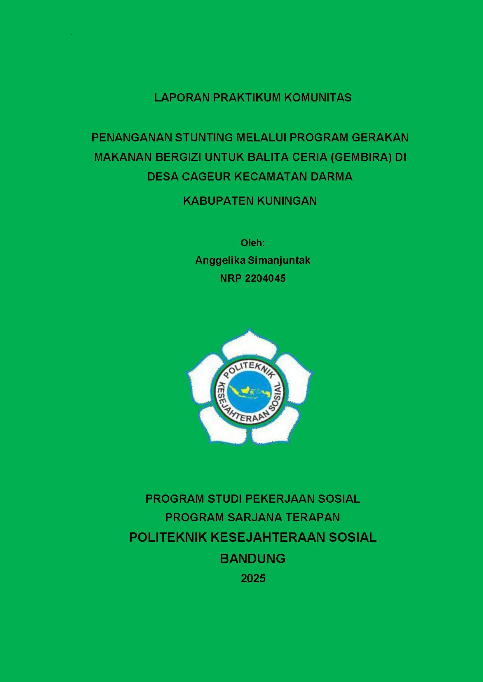 LAPORAN PRAKTIKUM KOMUNITAS - PENANGANAN STUNTING MELALUI PROGRAM GERAKAN MAKANAN BERGIZI UNTUK BALITA CERIA (GEMBIRA) DI DESA CAGEUR KECAMATAN DARMA KABUPATEN KUNINGAN