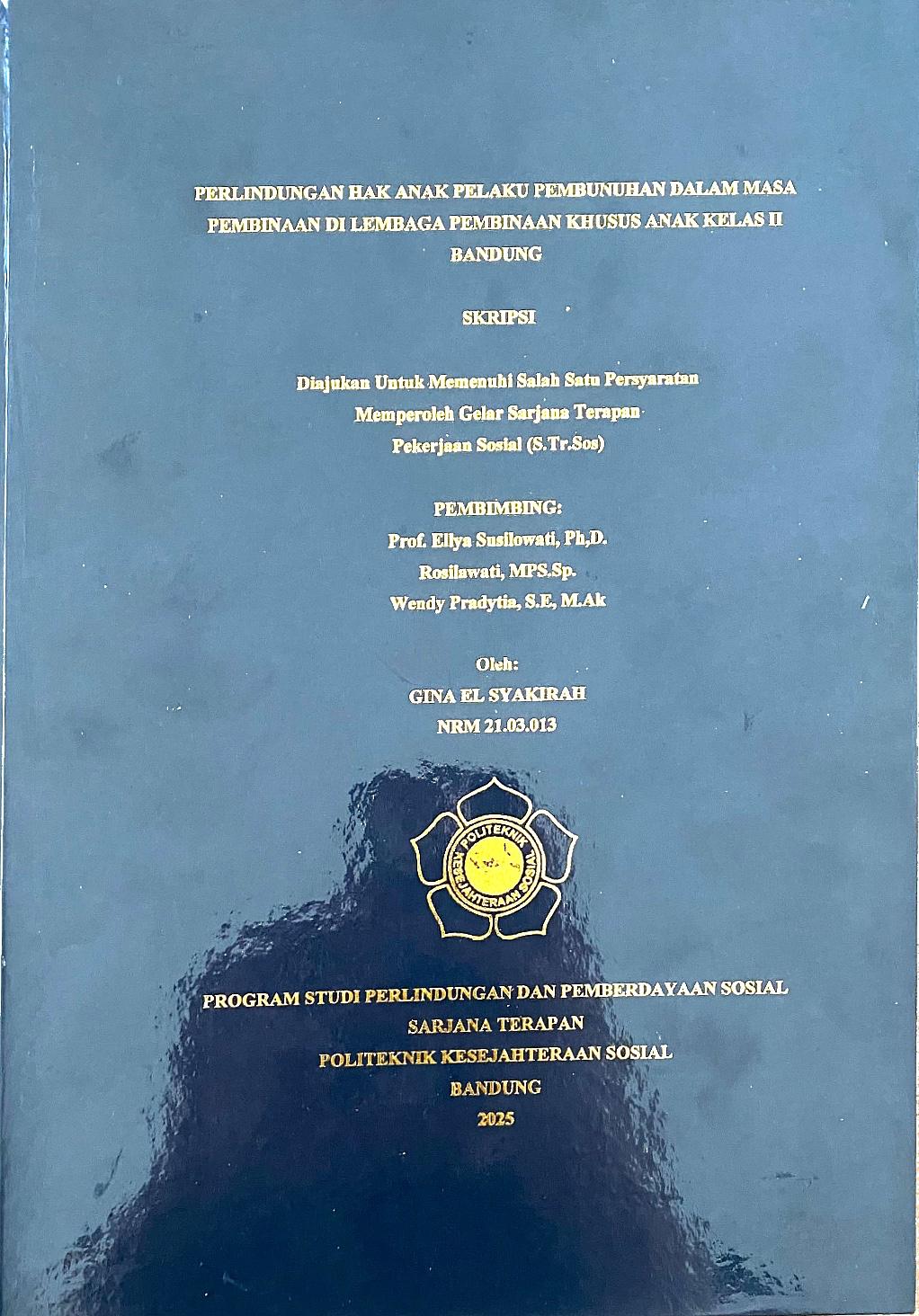 Gina El Syakirah, NRM. 21.03.013. Perlindungan Hak Anak Pelaku Pembunuhan Dalam Masa Pembinaan Di Lembaga Pembinaan Khusus Anak Kelas II Bandung. Dibimbing oleh ELLYA SUSILOWATI, ROSILAWATI, dan WENDY PRADYTIA