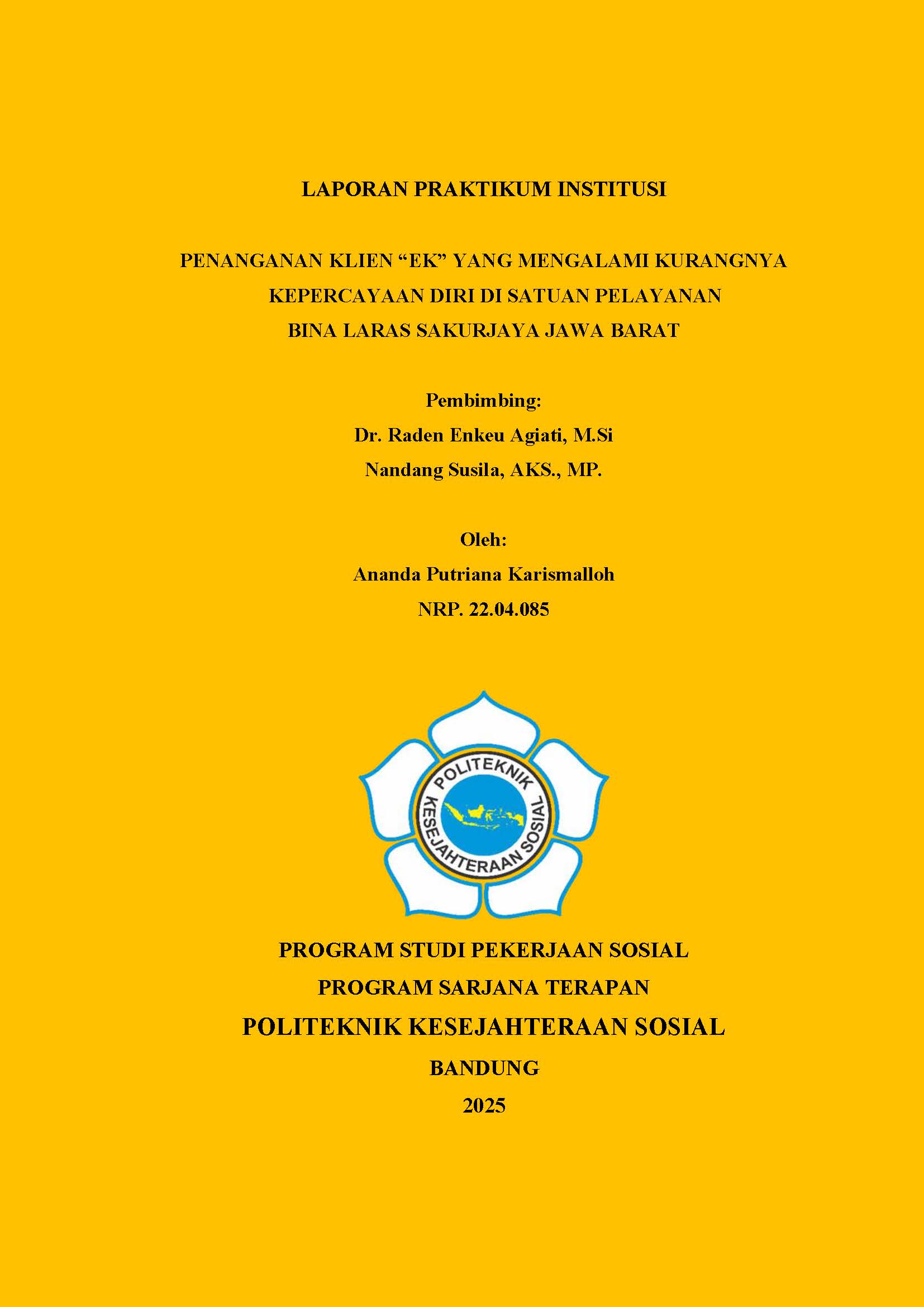 LAPORAN PRAKTIKUM INSTITUSI - PENANGANAN KLIEN “EK” YANG MENGALAMI KURANGNYA KEPERCAYAAN DIRI DI SATUAN PELAYANAN BINA LARAS SAKURJAYA JAWA BARAT