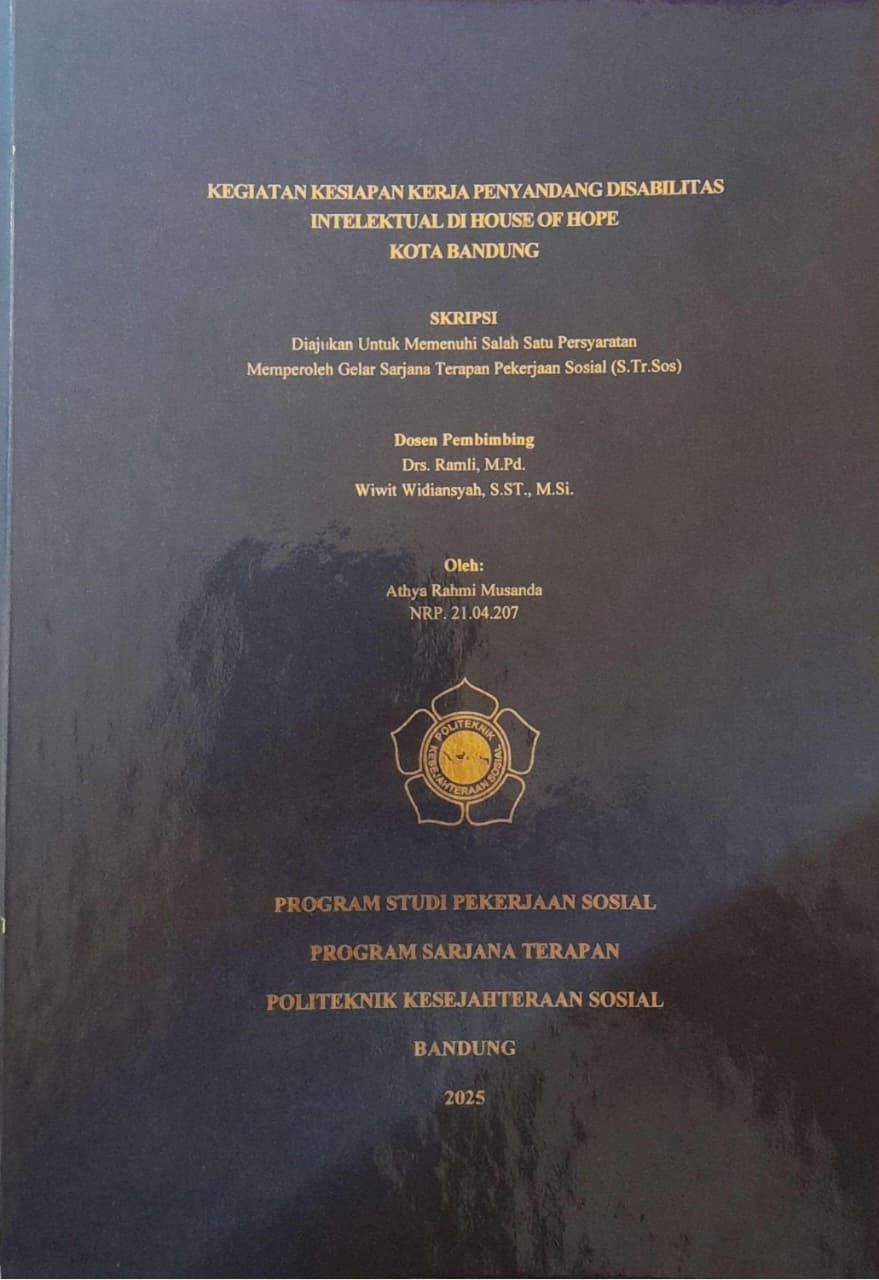 ATHYA RAHMI MUSANDA. NRP. 21.04.207. Kegiatan Kesiapan Kerja Penyandang Disabilitas Intelektual di House of Hope Kota Bandung. Dibimbing oleh : Ramli dan Wiwit Widiansyah.