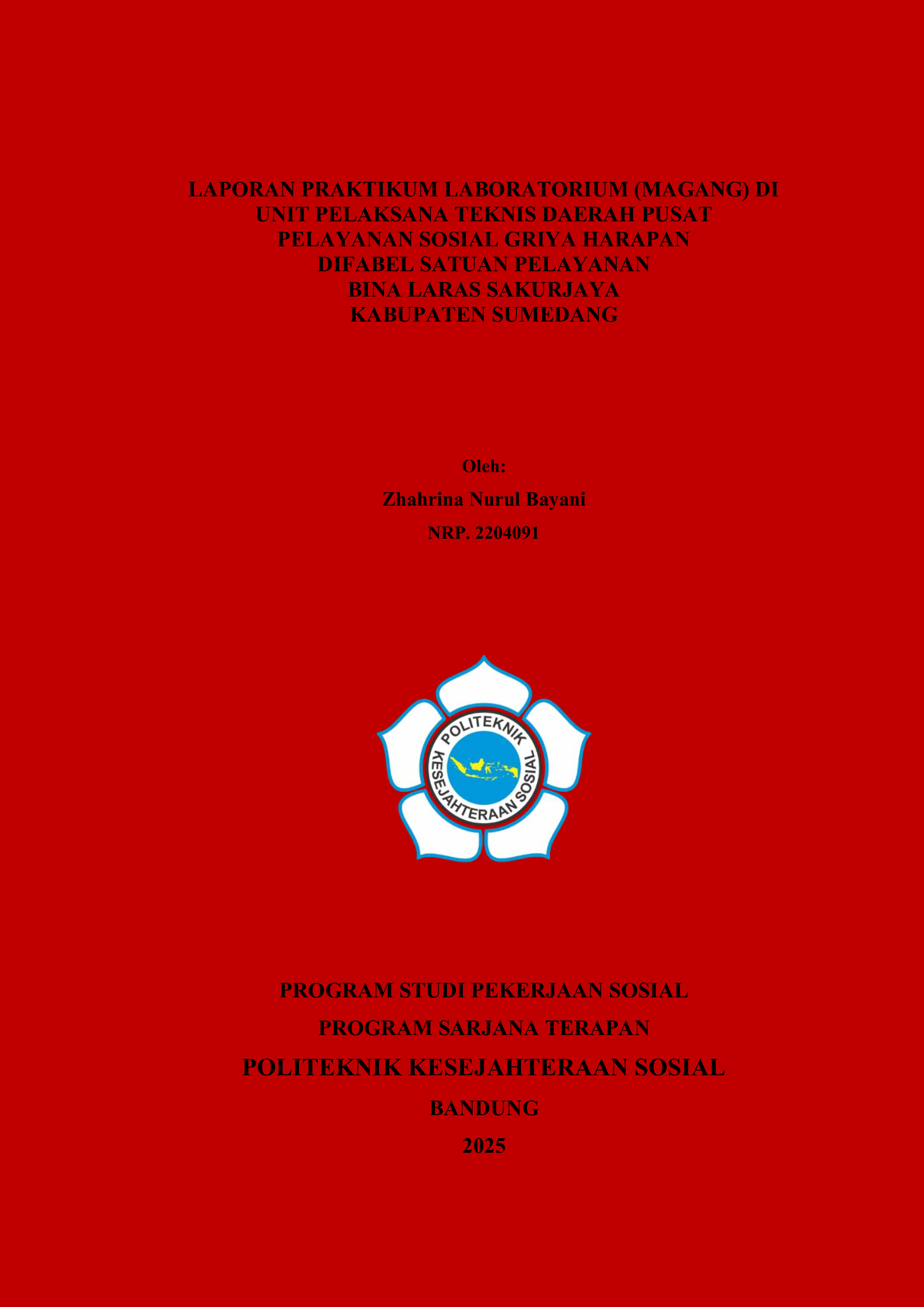 LAPORAN PRAKTIKUM LABORATORIUM (MAGANG) DI UNIT PELAKSANA TEKNIS DAERAH PUSAT PELAYANAN SOSIAL GRIYA HARAPAN DIFABEL SATUAN PELAYANAN BINA LARAS SAKURJAYA KABUPATEN SUMEDANG