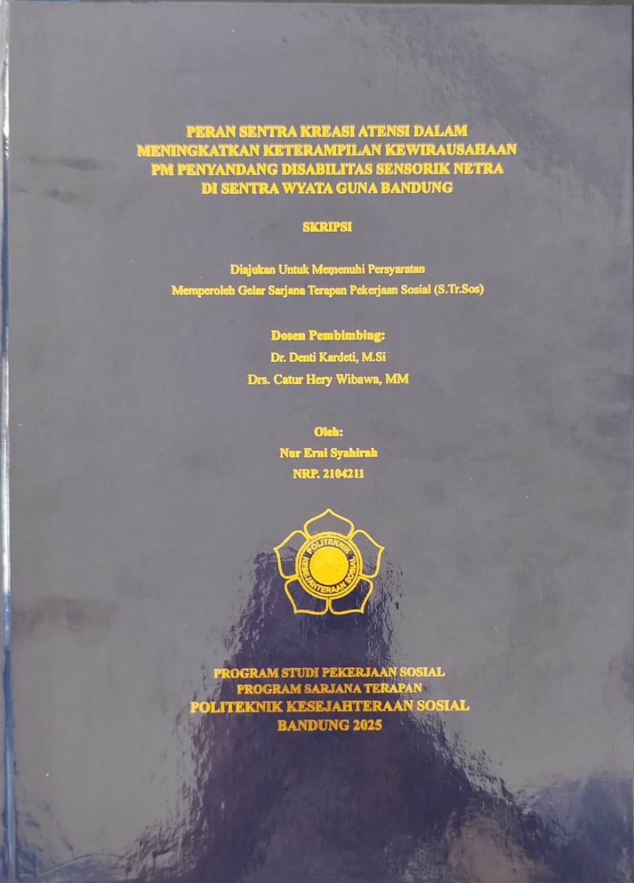 Nur Erni Syahirah, NRP. 21.04.211. Peran Sentra Kreasi Atensi dalam Meningkatkan Keterampilan Kewirausahaan Penyandang Disabilitas Sensorik Netra di Sentra Wyata Guna Bandung. Dibimbing oleh DENTI KARDETI dan CATUR HERY WIBAWA
